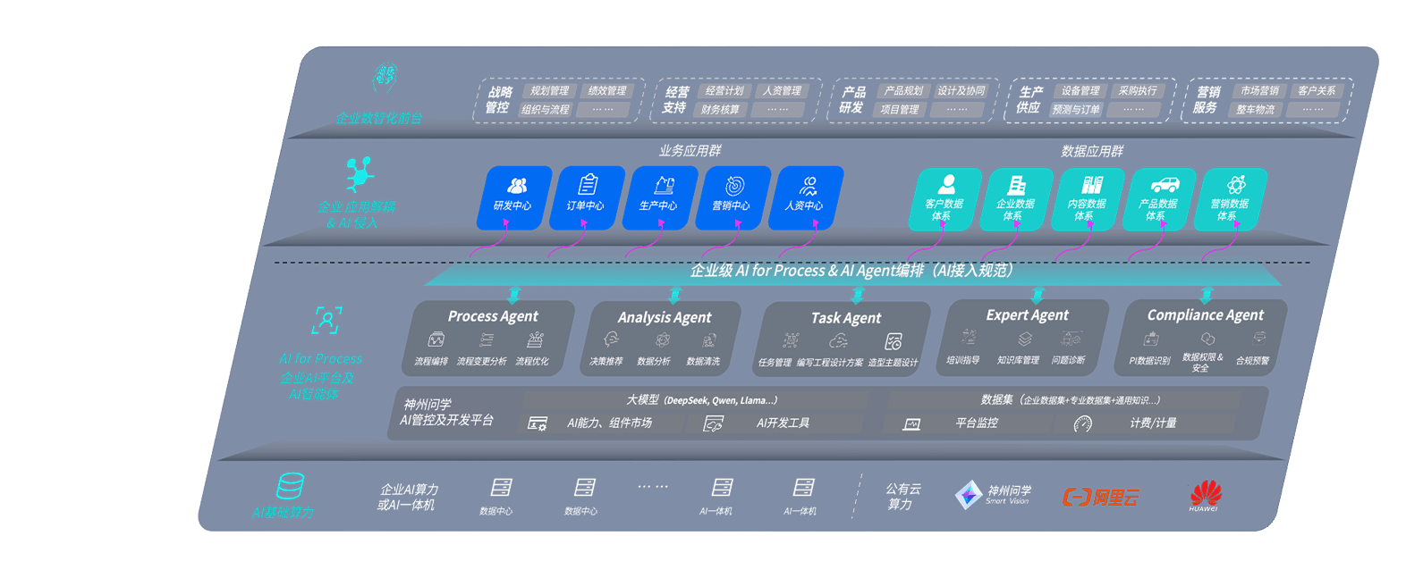 意昂2问学智车解决方案是一套基于AI技术的汽车行业智能化系统,,覆盖从底层算力到顶层AI应用的全栈方案。。。。方案由算力层、、、、模型层和应用层组成:算力层,,方案支持多种一体机配置,,具备云端灵活部署、、多云适配以及动态优化计算资源的能力;模型层,,意昂2问学平台版提供了企业级AI应用一站式构建与管理平台,,,,支持基于后训练强化技术的汽车企业专属模型的训练、、、、评测和运营;应用层,,意昂2问学DeepSeek版提供包括超级员工、、智能招采、、、智能营销、、、、智能客服、、、、AI for BI等一系列解决方案,,,,可助力汽车行业实现数字化转型,,,让管理更智能、、响应更敏捷。。