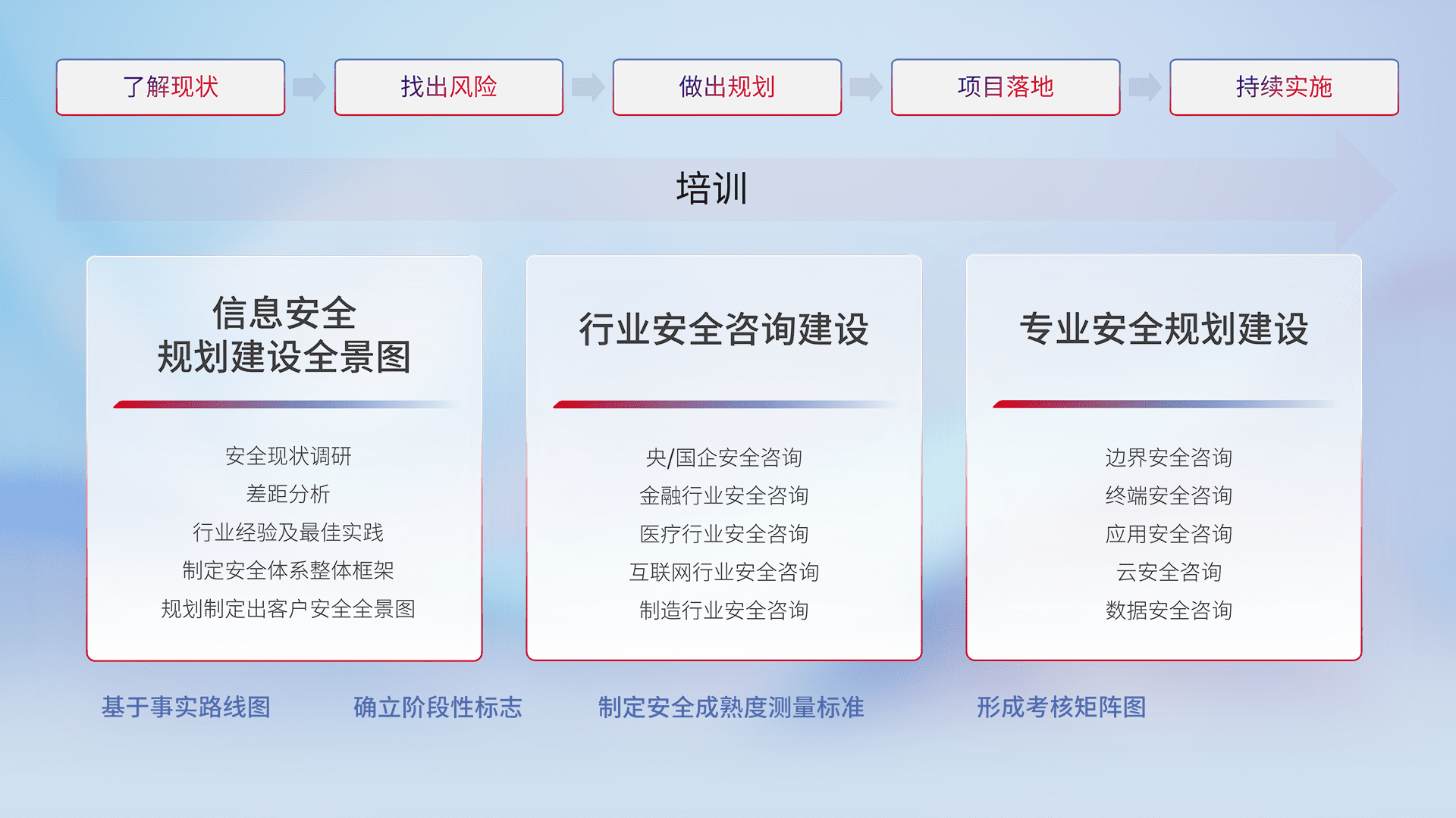 针对客户行业特性,,,将宏观的安全战略和需求,,,通过专业的交付服务,,实现项目落地,,,为客户提供标准规范的集成交付服务。。